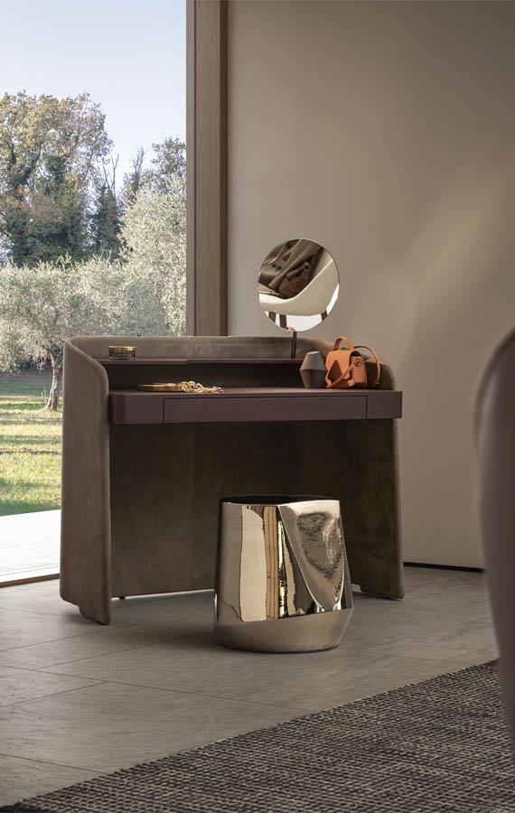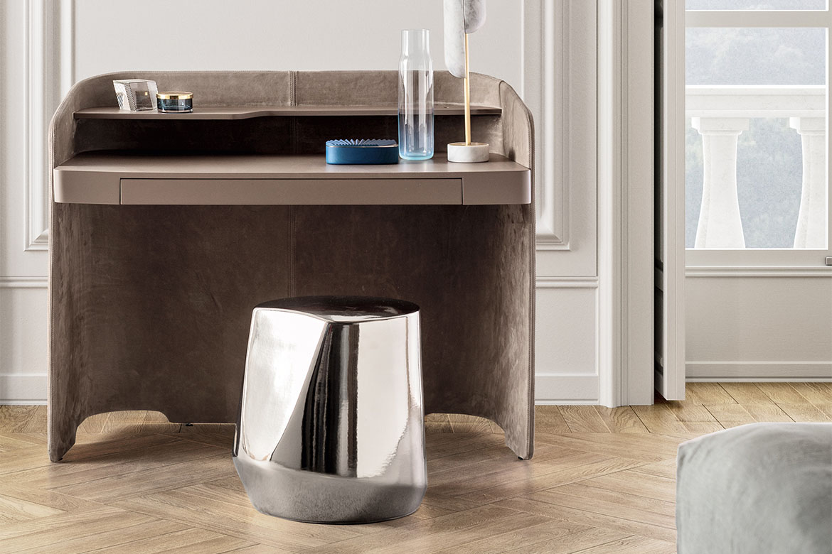 Η συλλογή περιλαμβάνει και το Chloé Vanity — ένα ευέλικτο και εκλεπτυσμένο έπιπλο, που μπορεί να χρησιμοποιηθεί είτε ως κομψό γραφείο είτε ως πολυτελές μπουντουάρ με καθρέφτη.