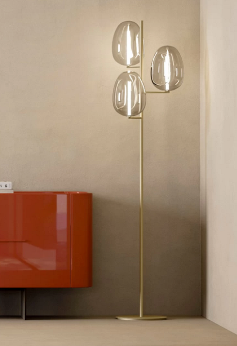 Η συλλογή Fos περιλαμβάνει κρεμαστές και δαπέδου λάμπες με απαλά, ακανόνιστα σχήματα που θυμίζουν οργανικές φόρμες. Τα καπνιστά γυάλινα καπέλα προσφέρουν ζεστό, διάχυτο φως, δημιουργώντας φιλόξενο και ατμοσφαιρικό περιβάλλον. Η Fos είναι modular, επιτρέποντας πολλαπλές διατάξεις που προσαρμόζονται σε διαφορετικούς χώρους και στυλ. Διαθέσιμη σε φινίρισμα μετάλλου τιτανίου ή βουρτσισμένου χρυσού.