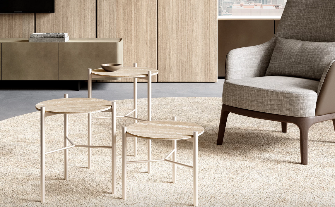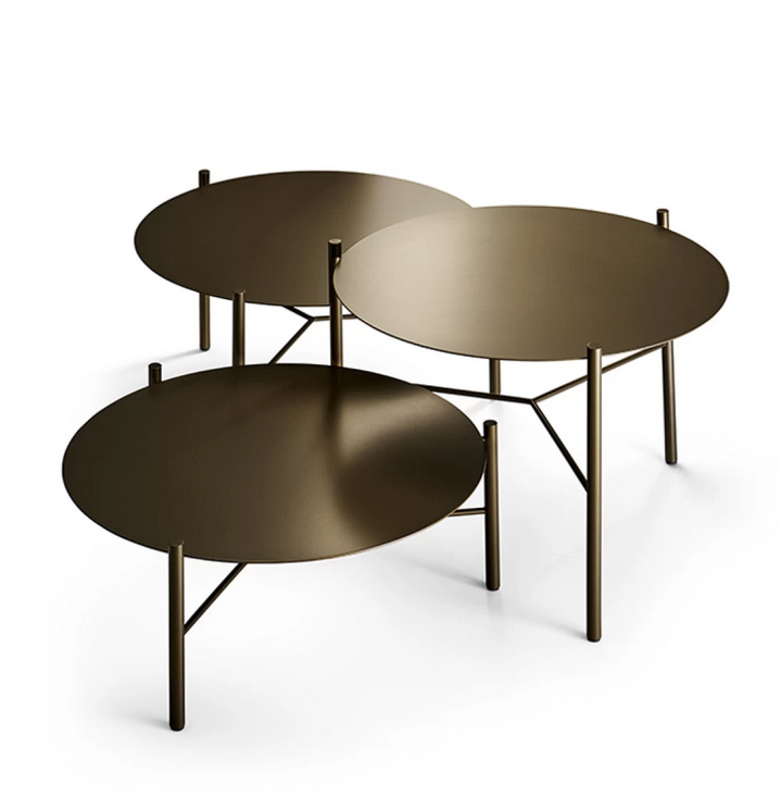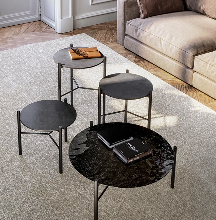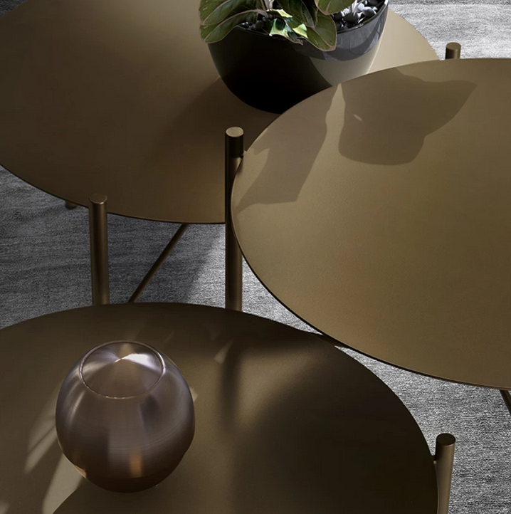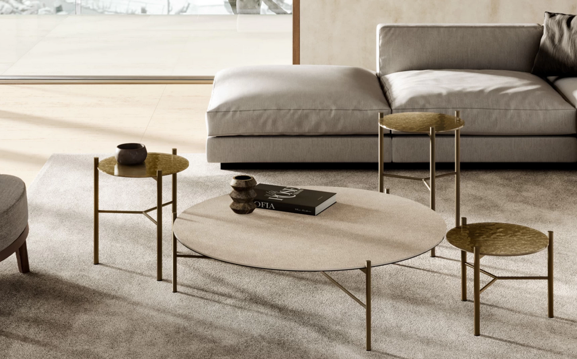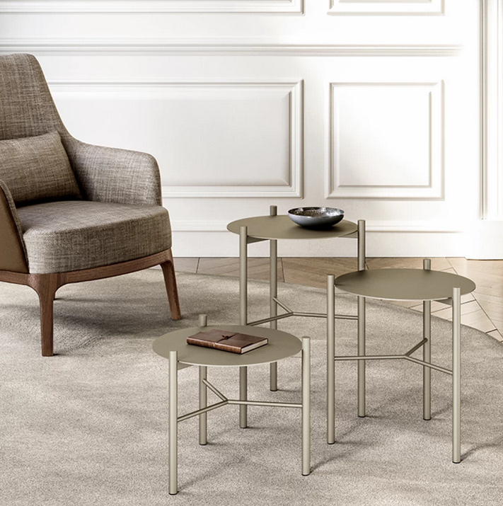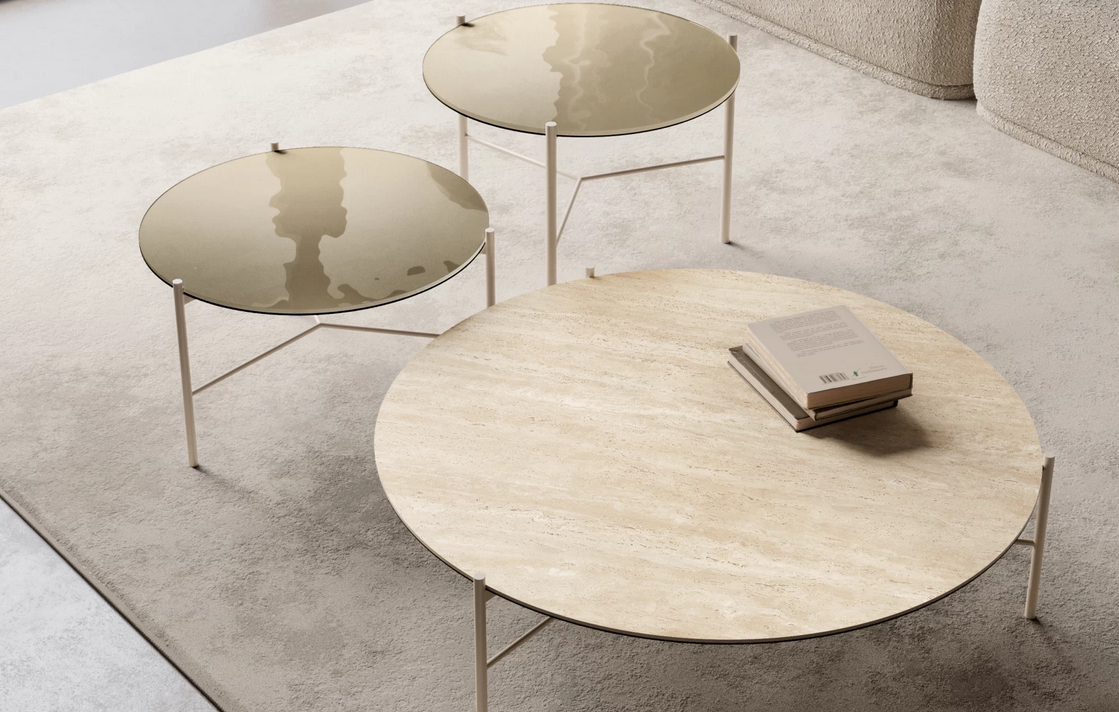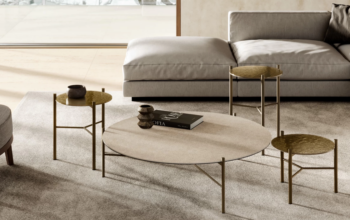 Μίνιμαλ τραπεζάκι σαλονιού με κομψή μεταλλική βάση και στρογγυλή επιφάνεια. Διατίθεται με κεραμική, μεταλλική, γυάλινη ή ξύλινη επιφάνεια, ιδανικό μπροστά από καναπέδες ή πολυθρόνες, προσθέτοντας κομψότητα και λειτουργικότητα σε κάθε χώρο.