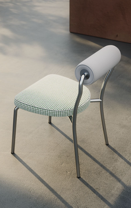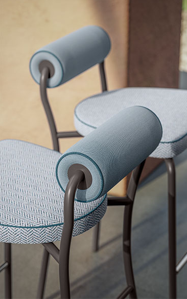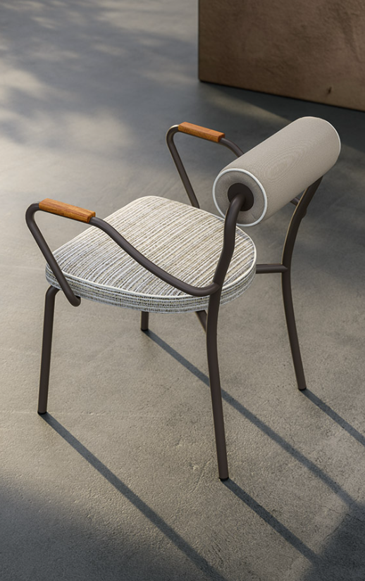 Επένδυση από υδροπερατό, αναπνεύσιμο και ανθεκτικό πολυουρεθανικό υλικό, ιδανικό για εξωτερικούς χώρους. Ο σκελετός από σωλήνα ανοξείδωτου χάλυβα διατίθεται σε βουρτσισμένο φινίρισμα ή βαμμένος σε Espresso και Seta.
