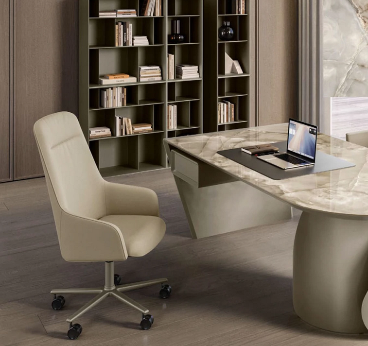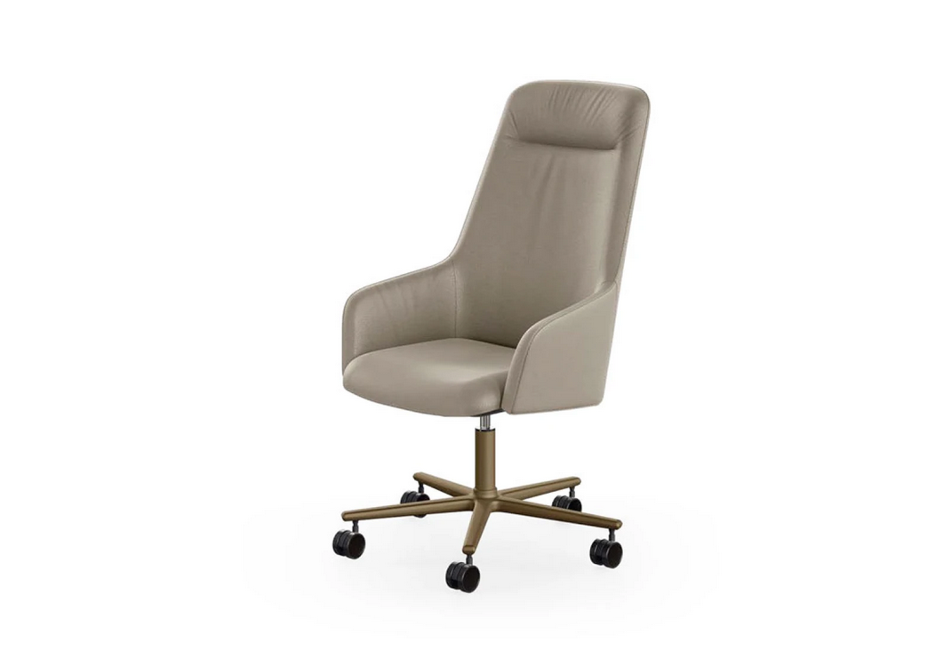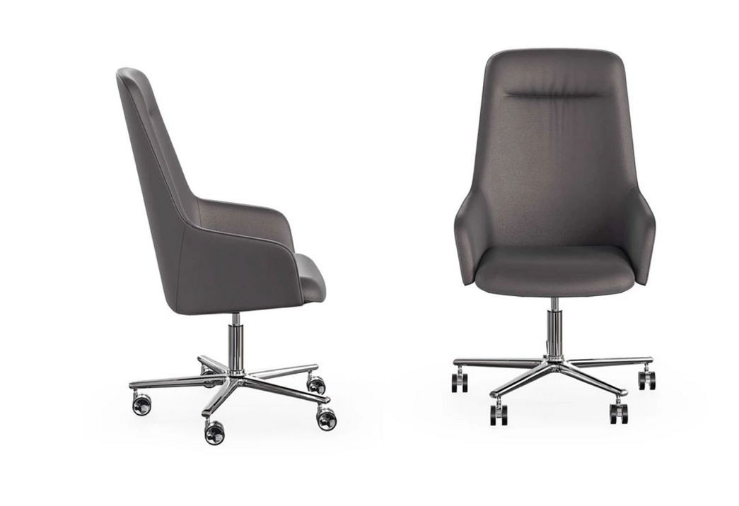 Η εκτελεστική καρέκλα Moritz με τροχούς συνδυάζει κομψότητα και άνεση για γραφείο ή σπίτι, διαθέτει δύο ύψη πλάτης και σύστημα συγχρονισμένης κίνησης. Διατίθεται σε ύφασμα, δερματίνη και δέρμα.